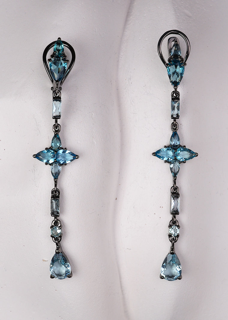 Long dangle earrings crafted from 925 sterling silver, coated with black rhodium.