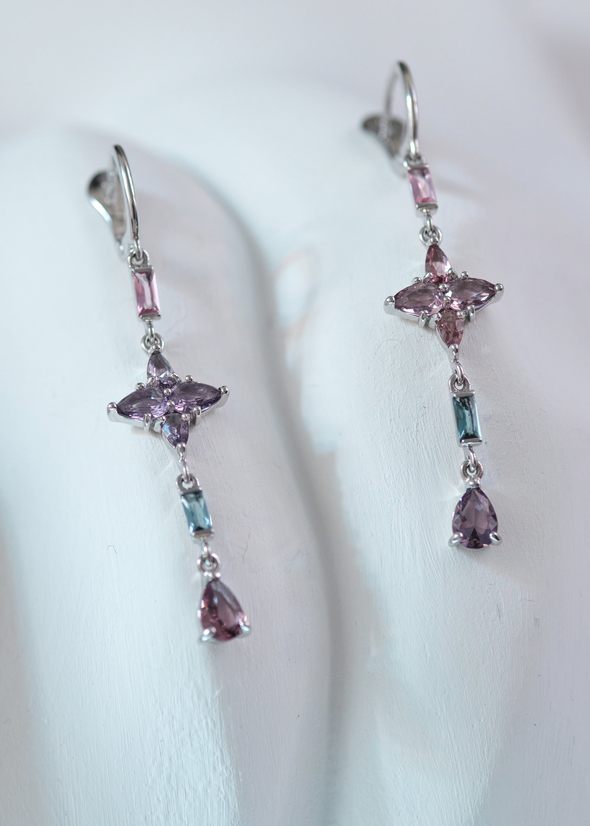 Elegant, movable earrings crafted from 925 sterling silver, plated with platinum and rhodium to prevent oxidation.