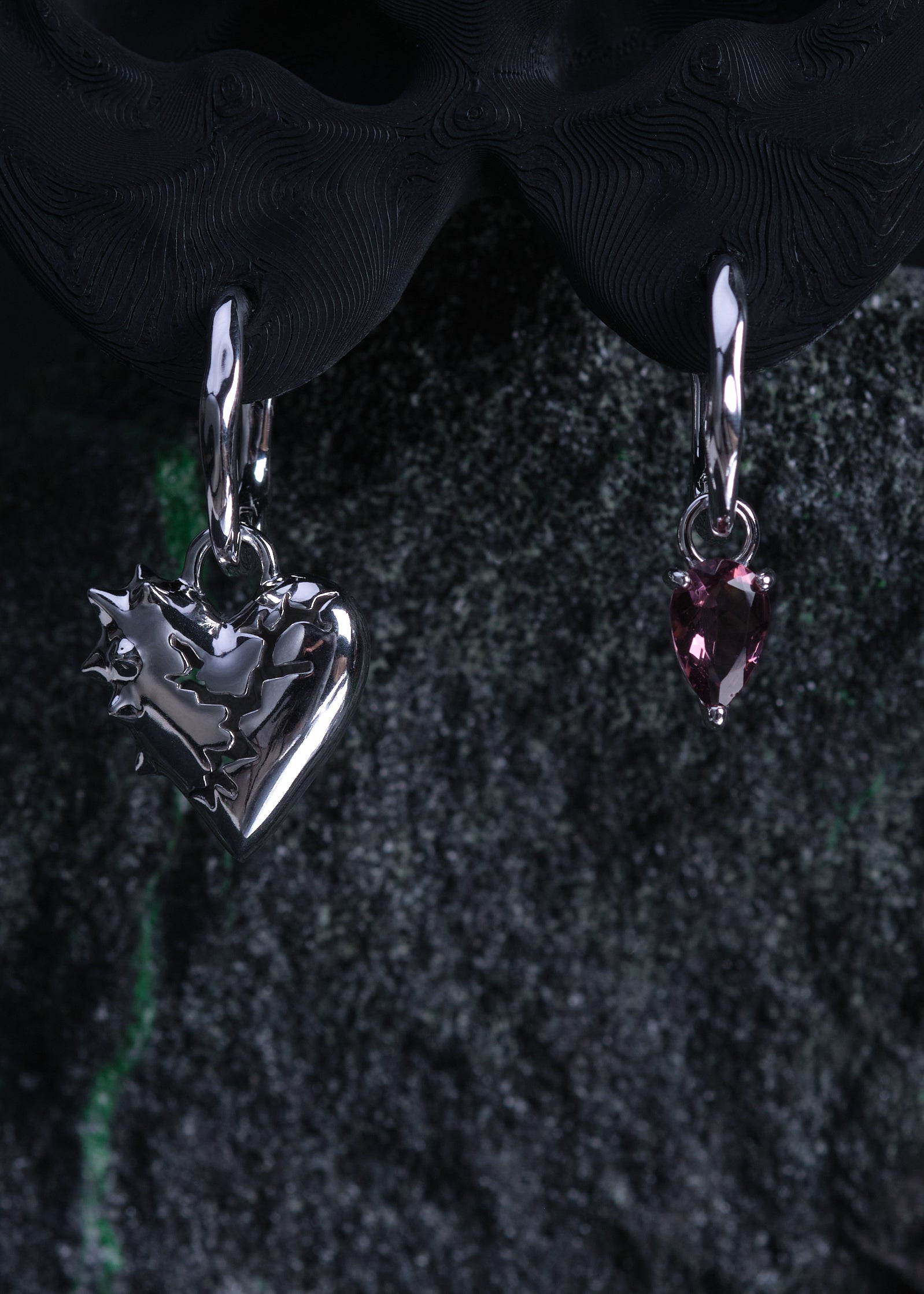 BASE Hoops + CRACKED HEART SPIKED Pendant + CRYSTAL DROP (plum) Pendant