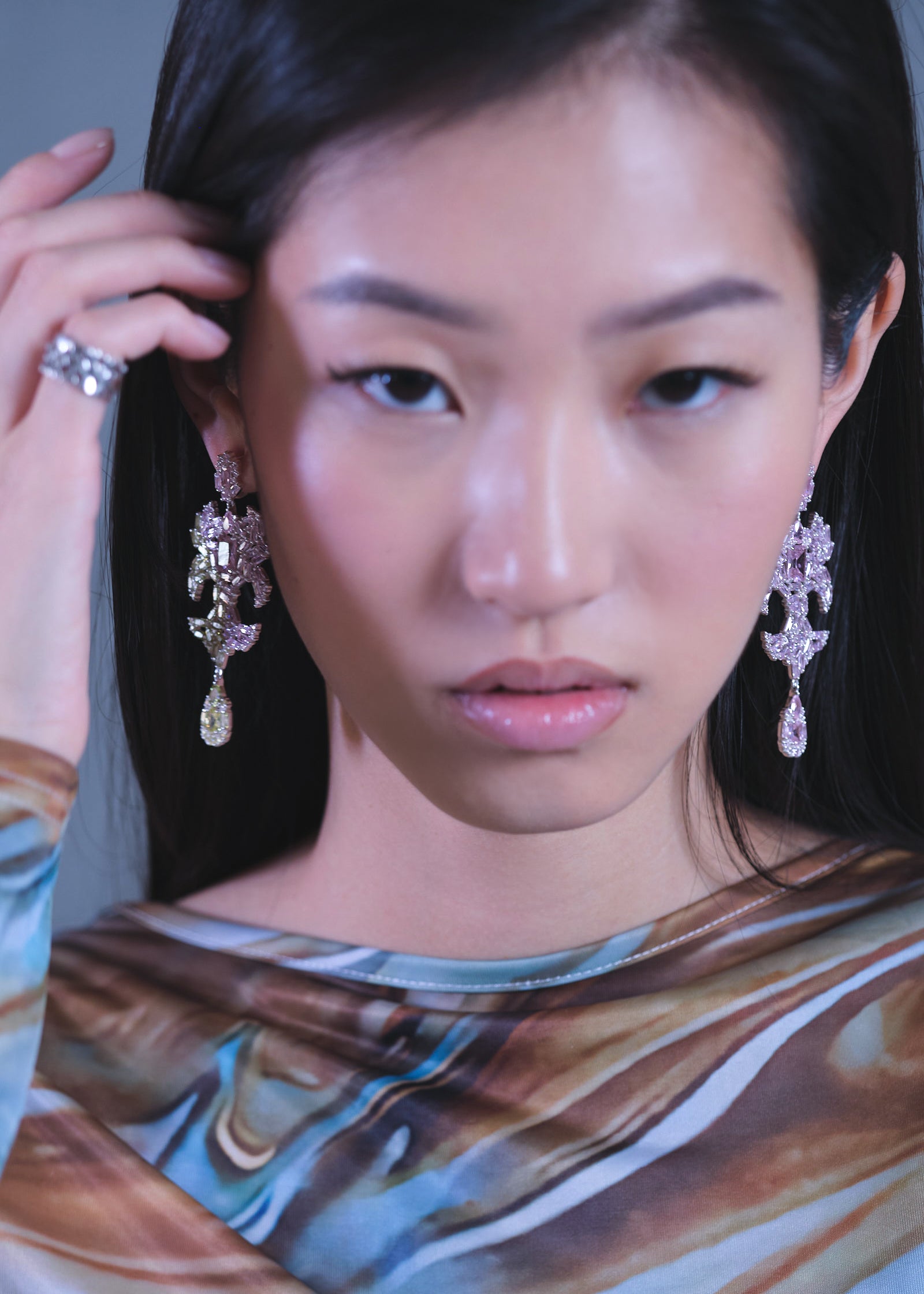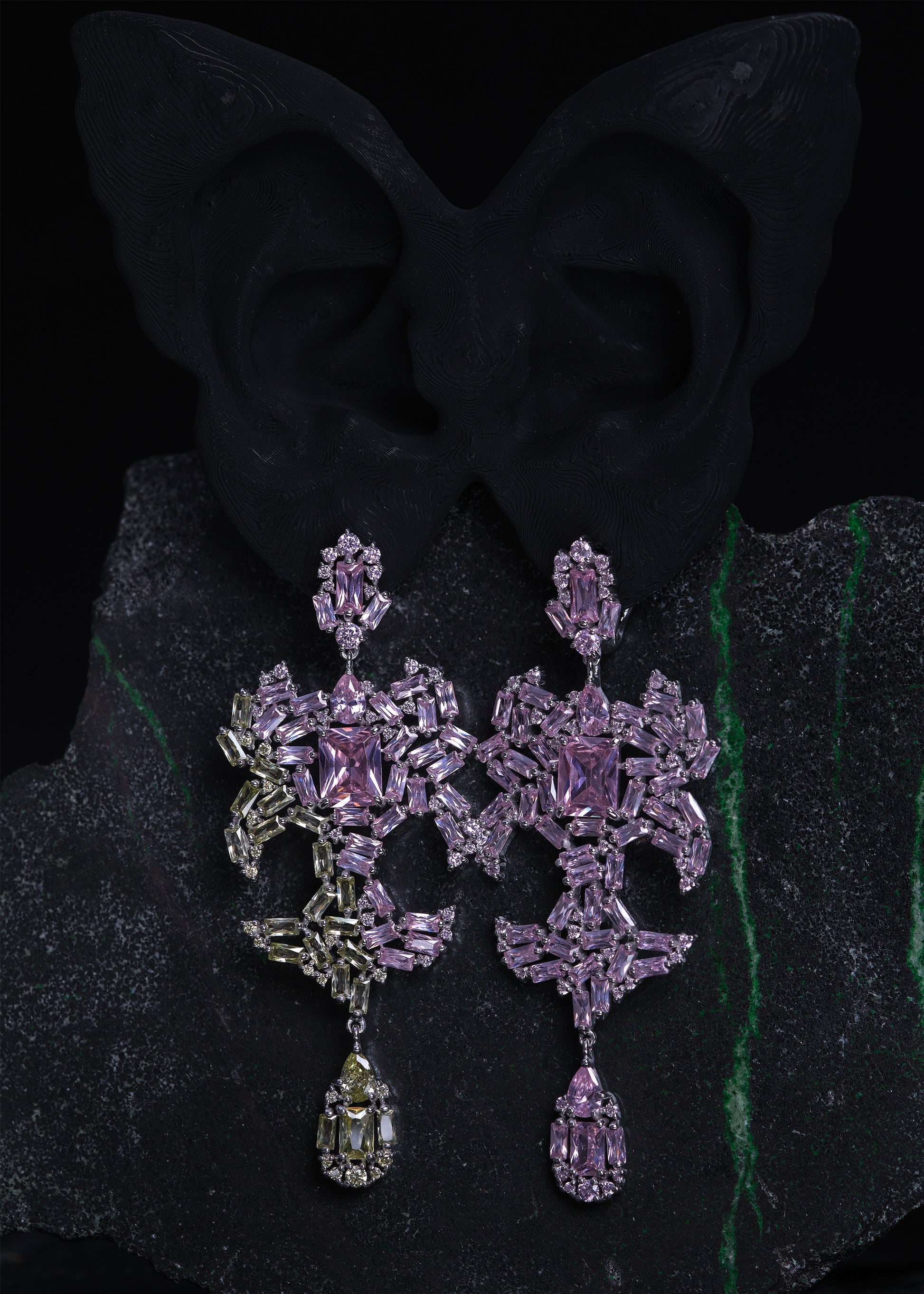 DRAGON HEART Earrings (Pink Ripped Green)