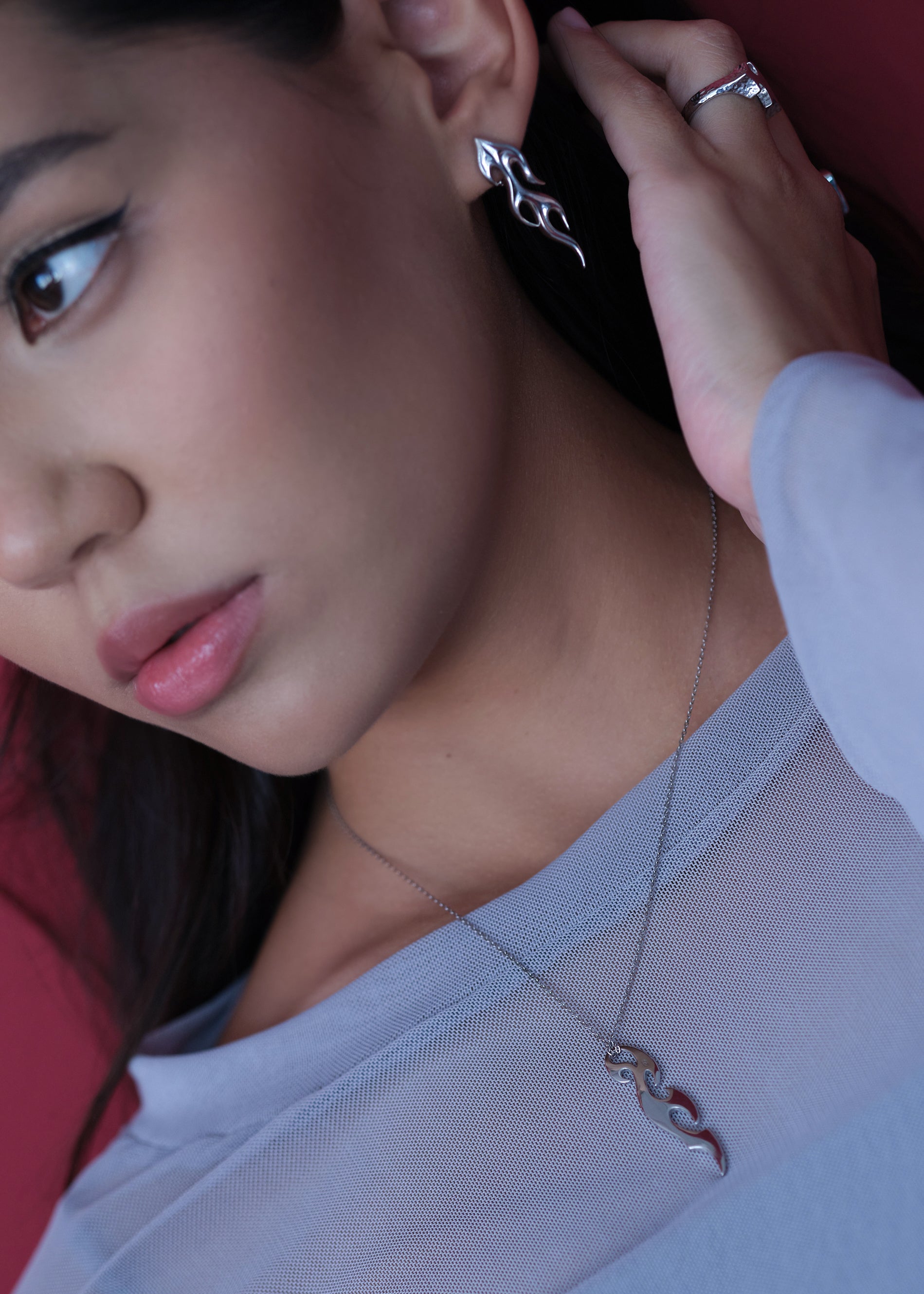 Sterling silver. Rhodium plating.