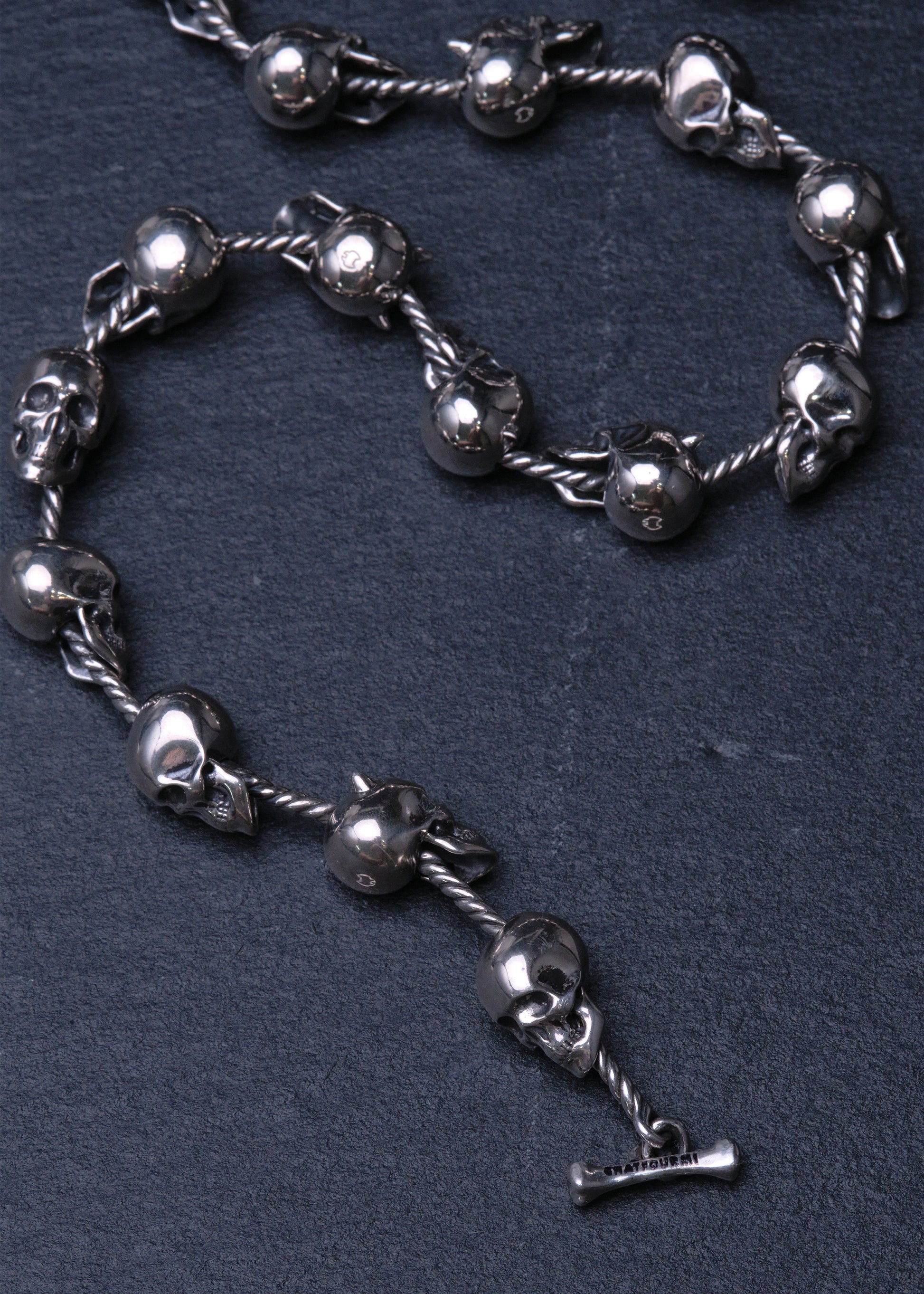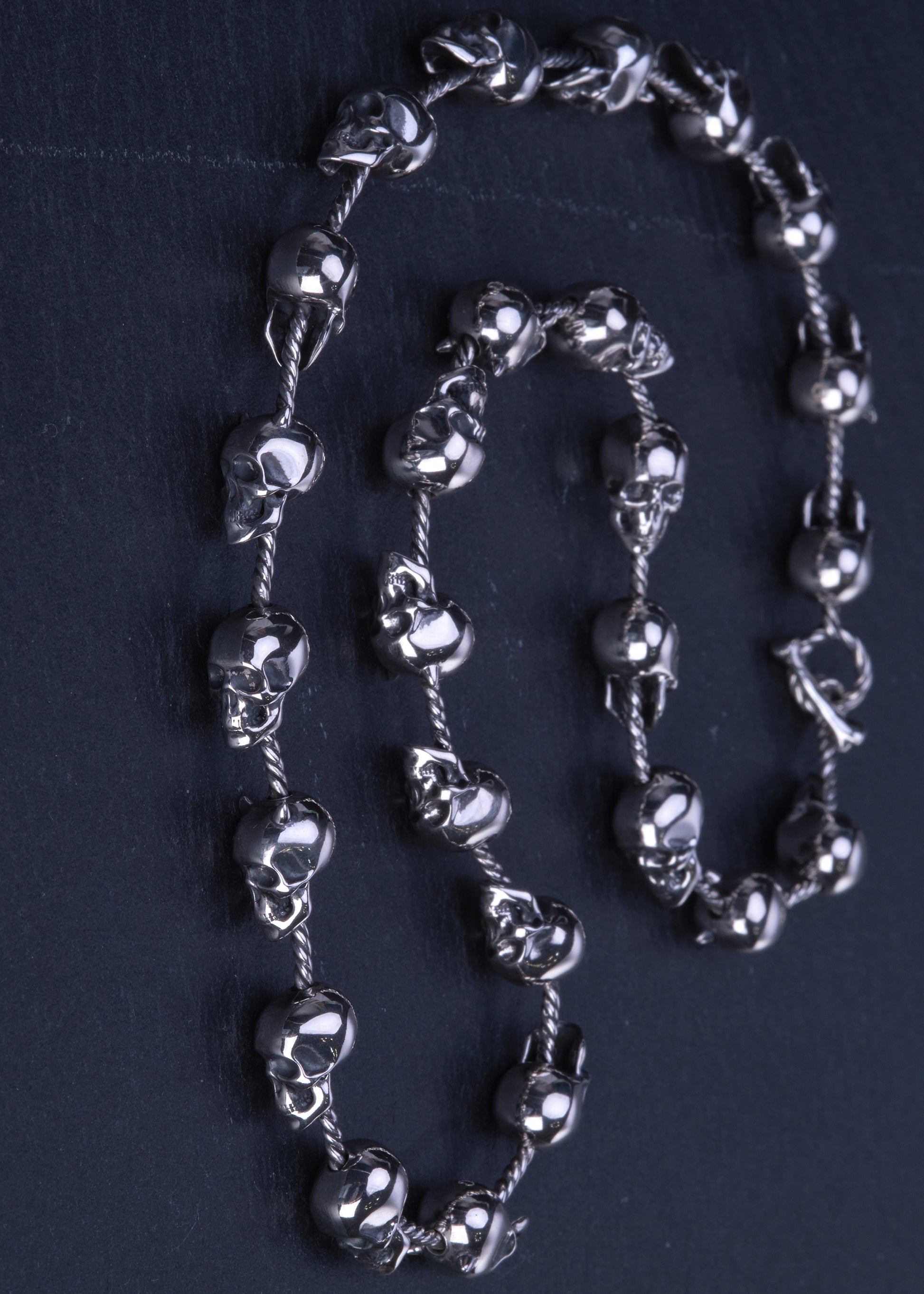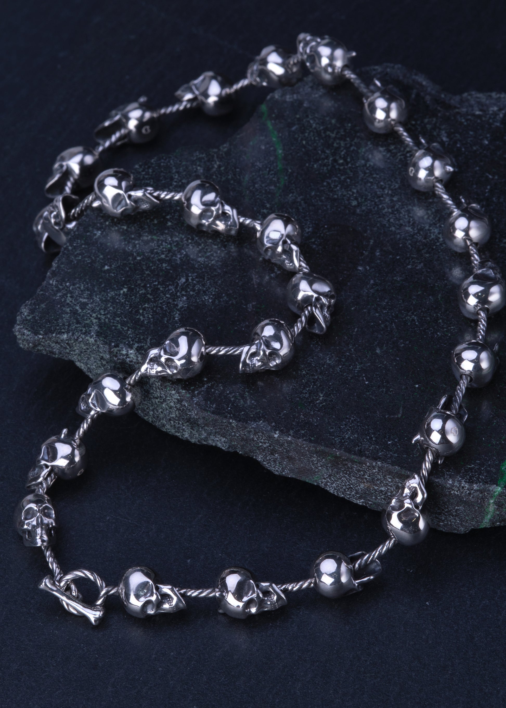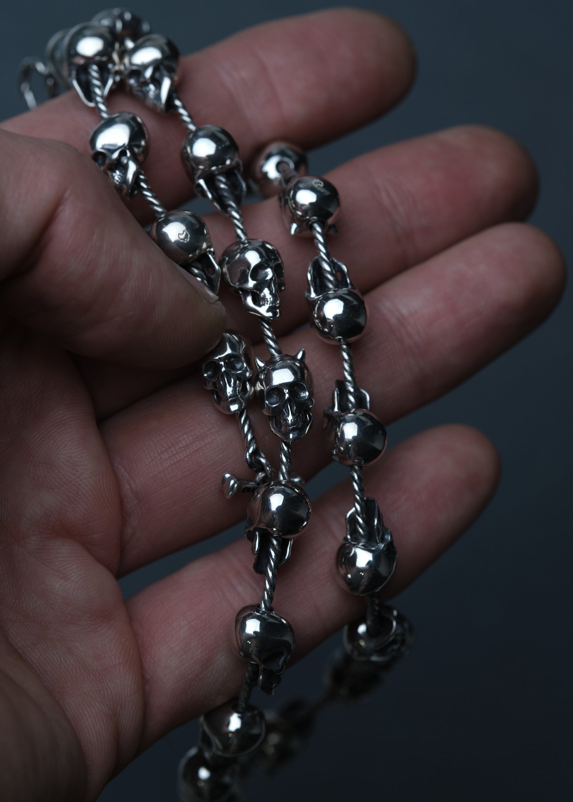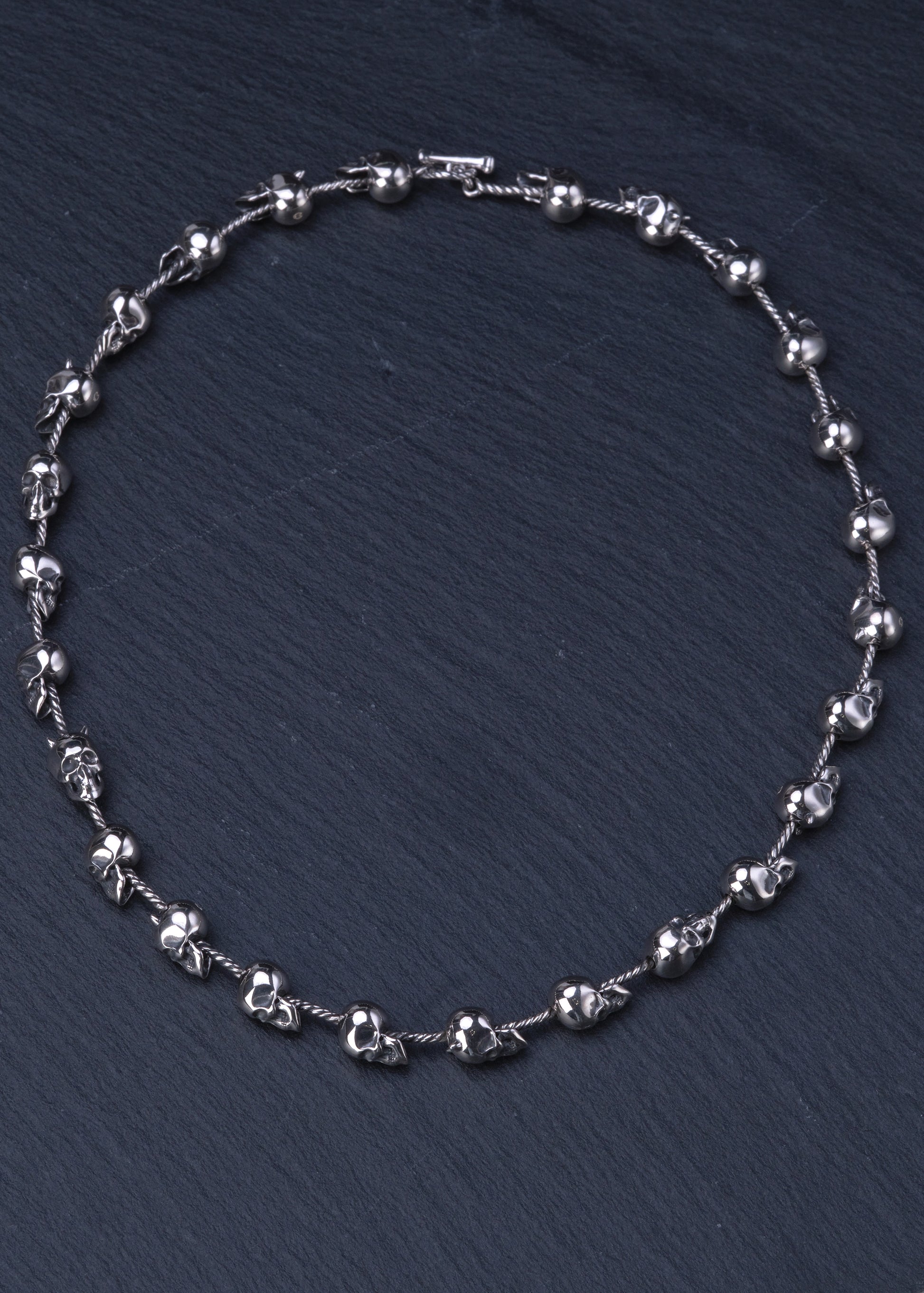 The skull motif has already become classical, but what makes our chain special is that all the connections are neatly hidden inside the skulls, making them resemble round beads on a rope.