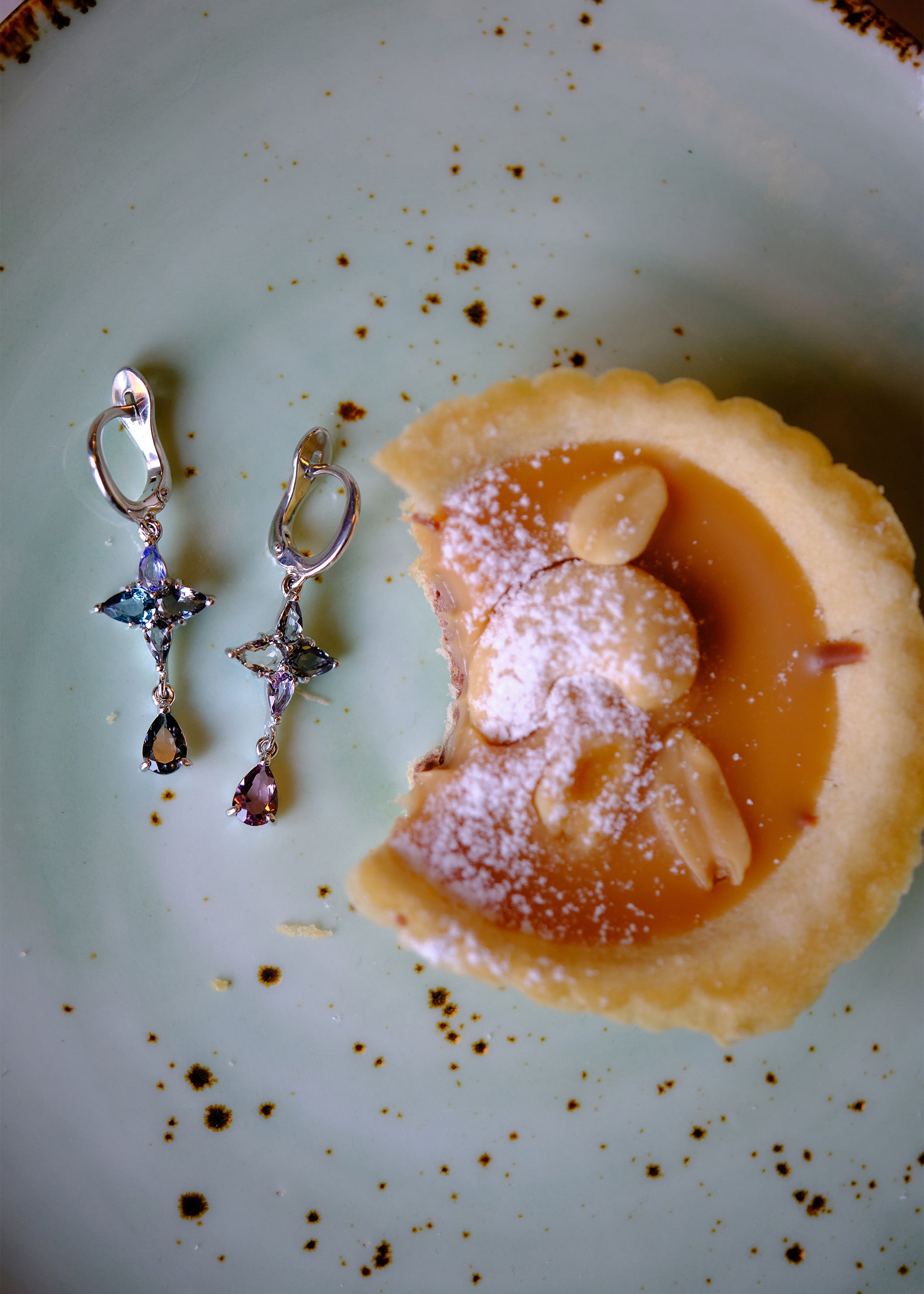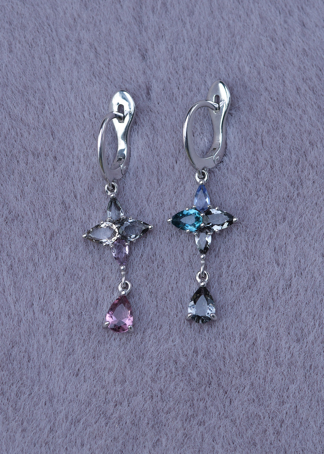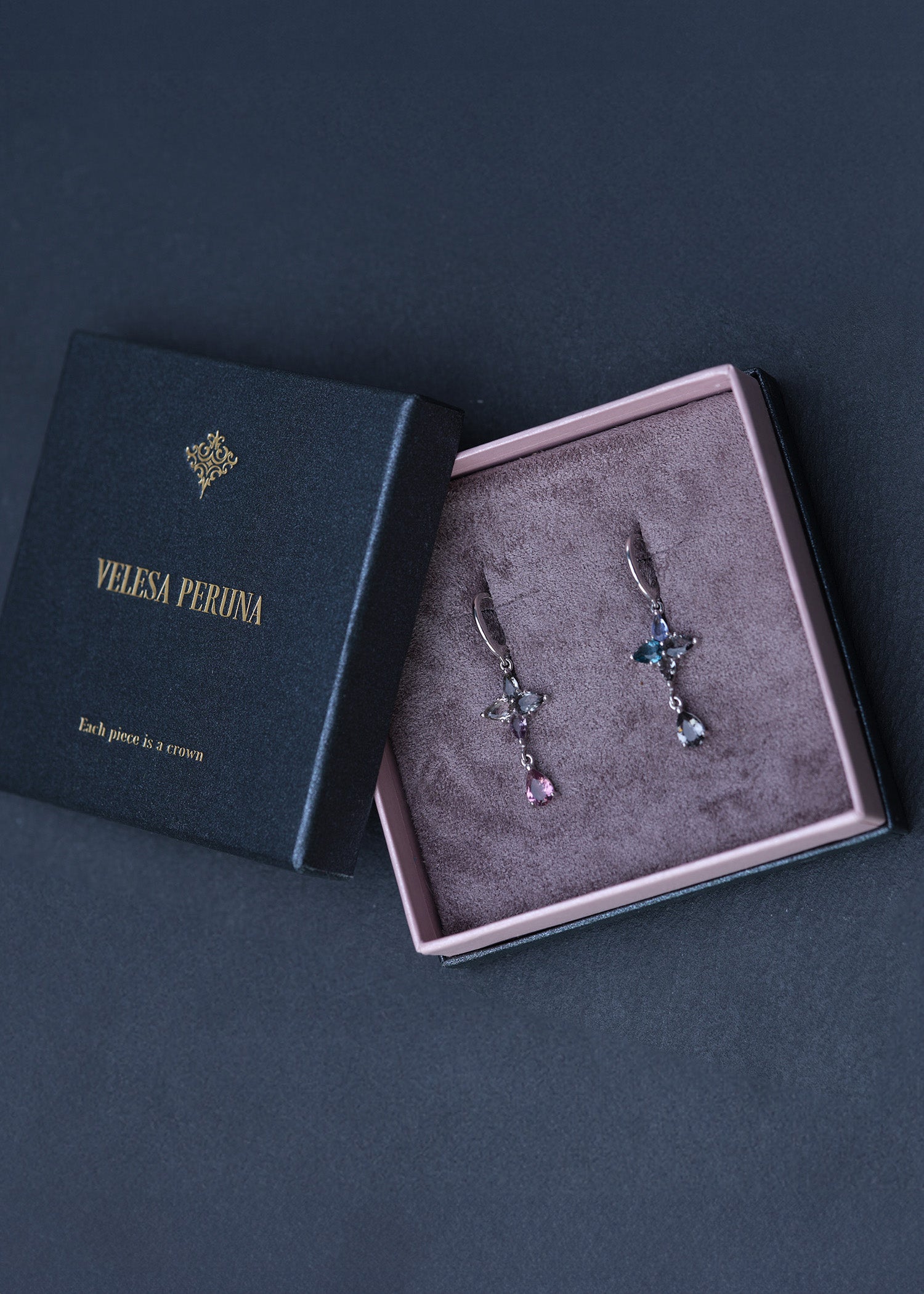 Minimalist refined design with an unusual yet captivating color selection of synthetic quartz crystals.