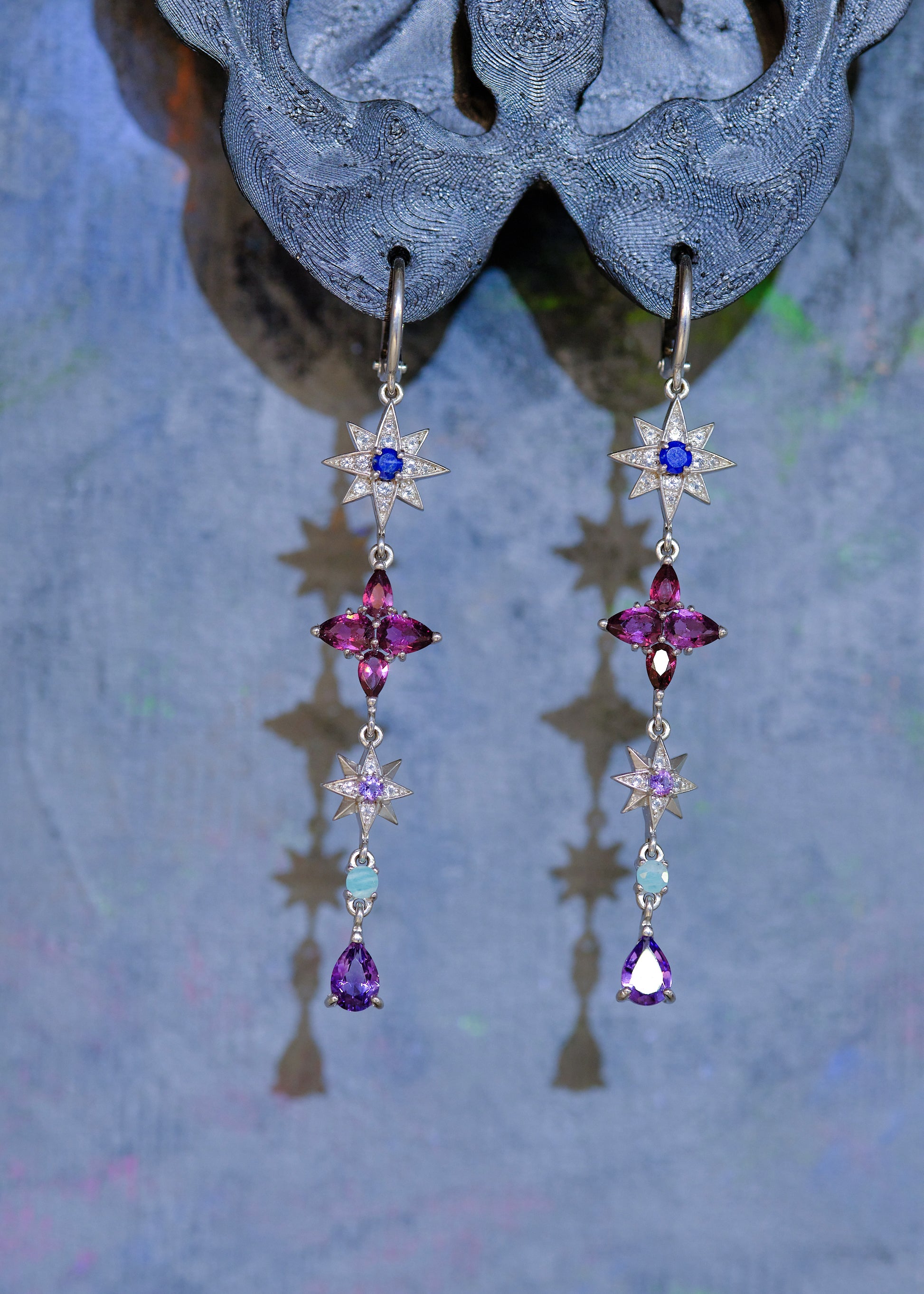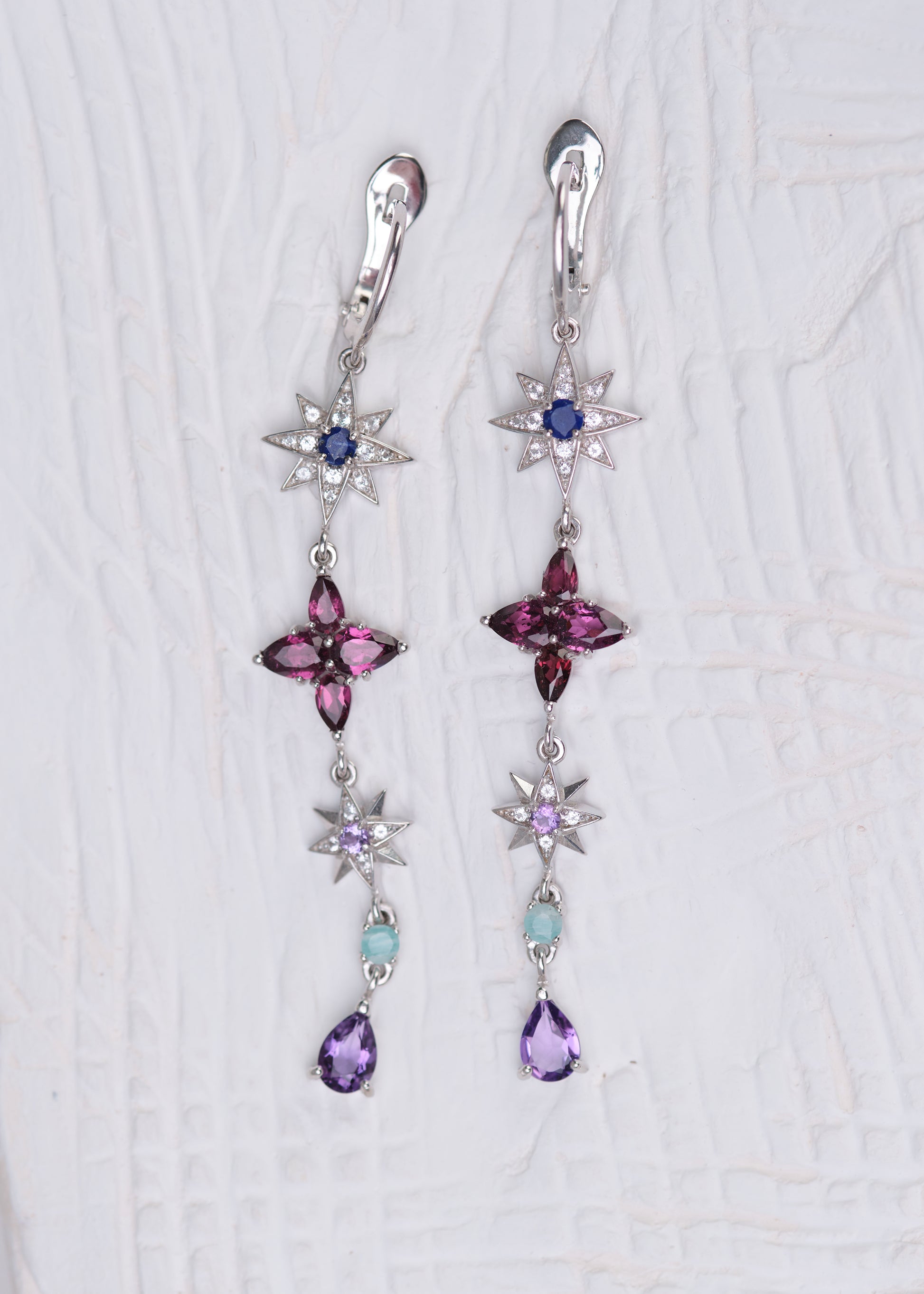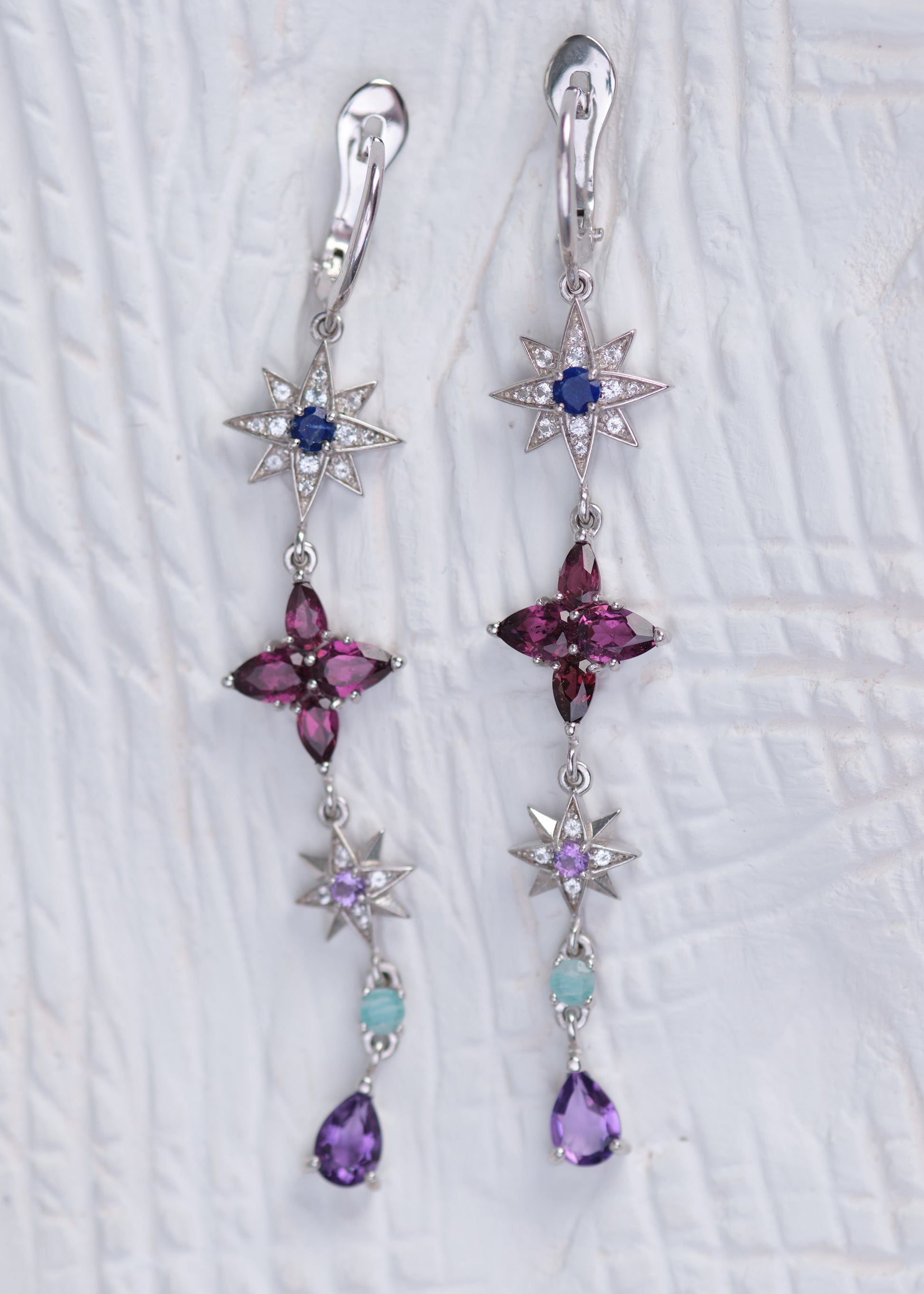 All natural stones: lapis, rhodolite, amethyst, amazonite, white topaz.