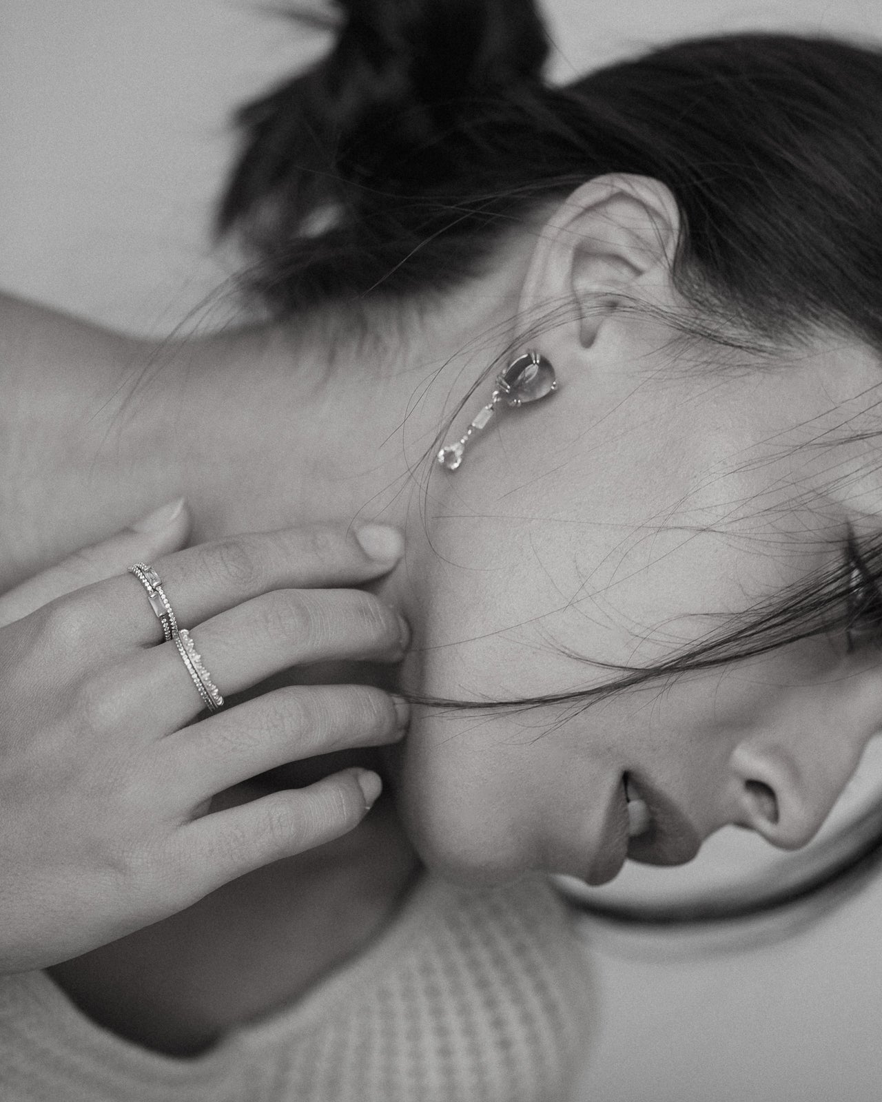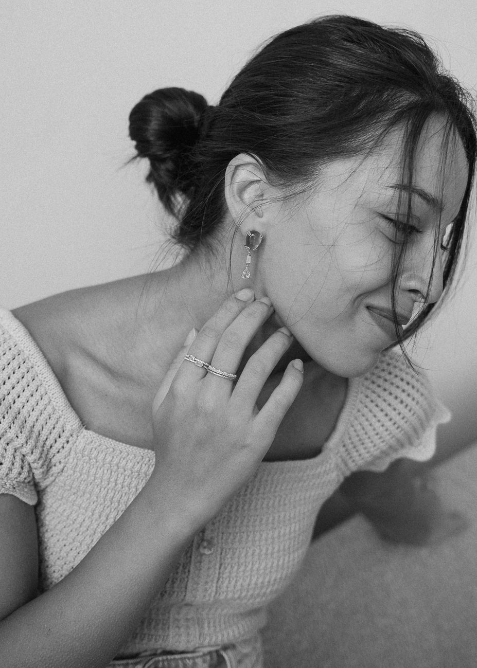 925 sterling silver, rhodium plated. Slight asymmetry in color.