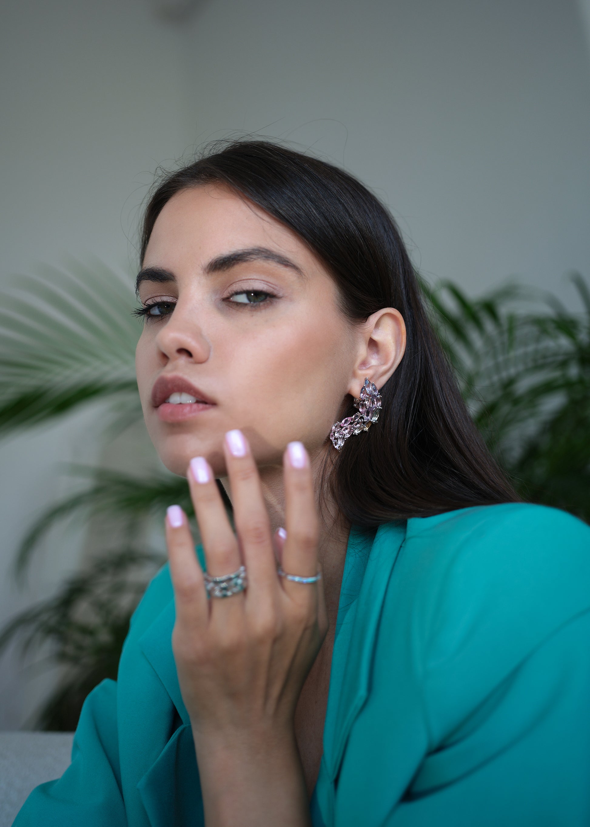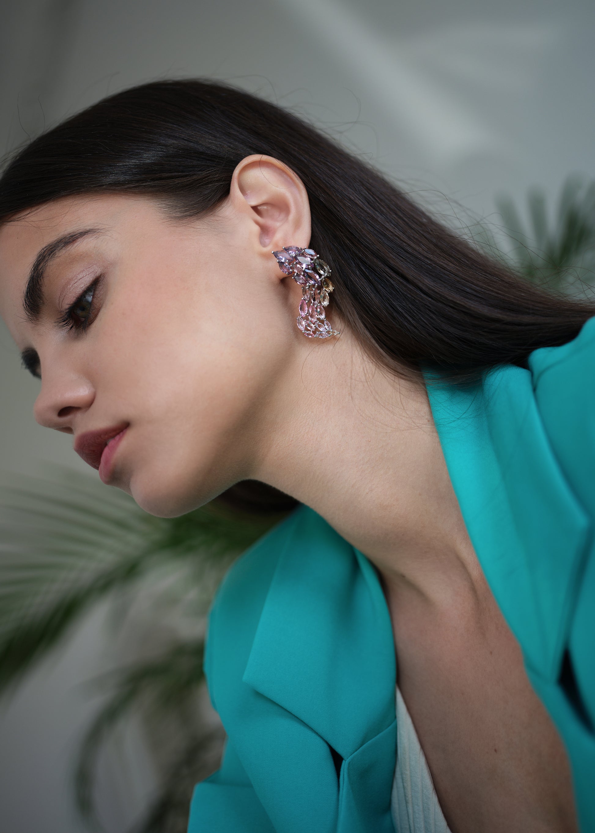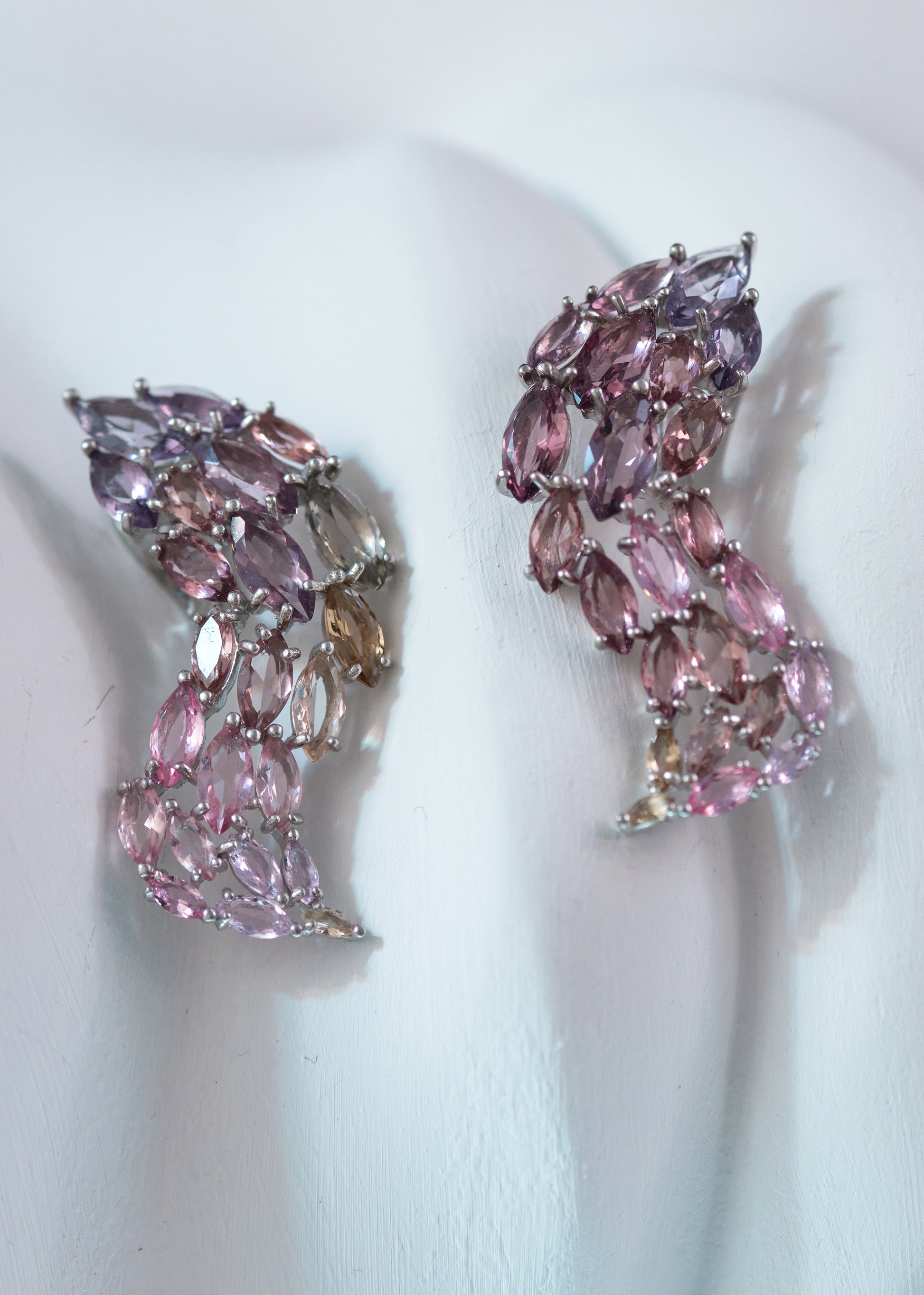 Statement yet refined, these bold earrings feature 46 meticulously selected stones with intricate watercolor-like color transitions.