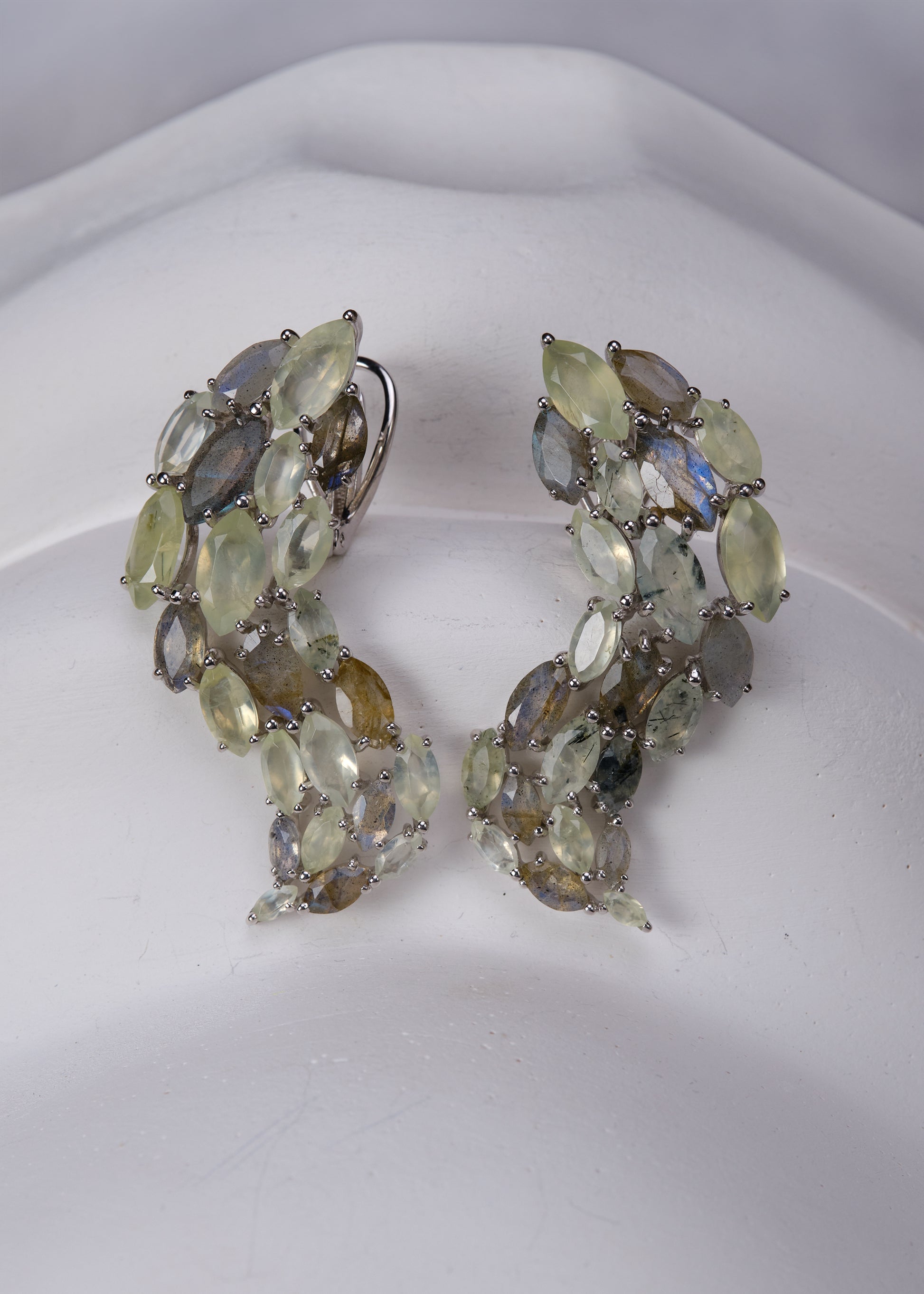 All natural stones: prehnite, labradorite. One-of-a-kind set of stones.